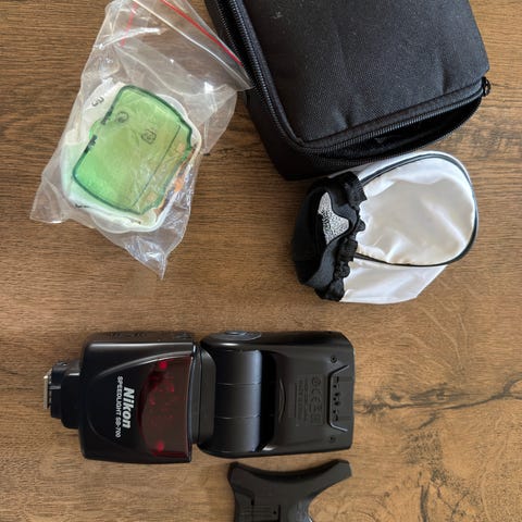 Nikon Speedlight SB-400 blitz med kompakt design. Egnet for bruk med Nikon-kameraer for å gi ekstra belysning ved fotografering i mørke omgivelser eller ved behov for utfyllingslys.