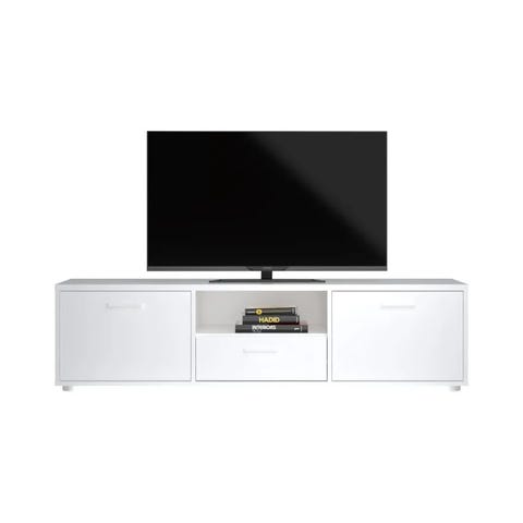 TV benk fra IKEA. Hvit, med noe trestruktur.