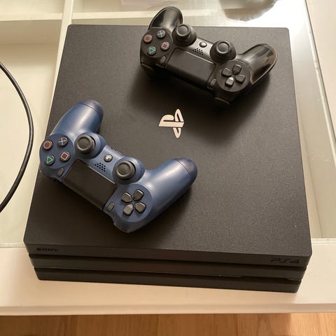 Sony Playstation 4 Pro 2 TB, spillkonsoll i svart farge. Konsollen leveres med en trådløs kontroller. Egnet for bruk med Playstation 4-spill og tilbehør. alle kabler følger med.