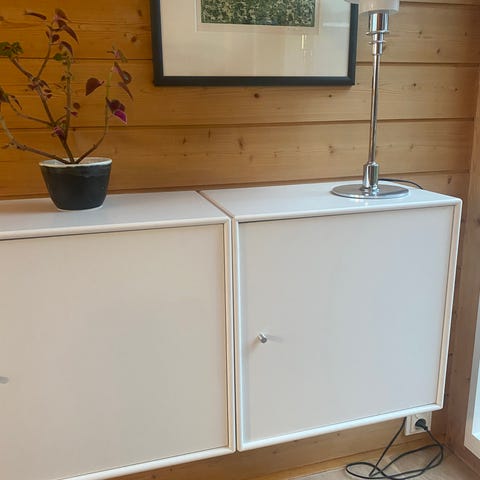 Vegghengte Montana moduler, laget for stereo- og tv-utstyr. 2000/stk, 5000 for alle tre.
