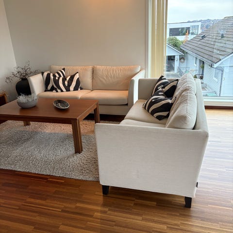 Som vises på bilder, brukte vi helt pent også, sofaer ligger i veldig god stand.