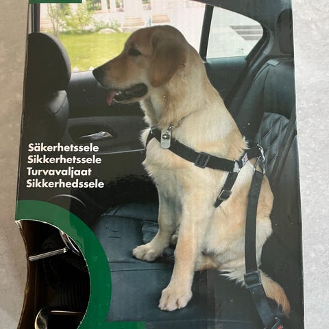 Denne selen hindrer hunden i å vandre rundt i bilen. Hunden og presoner i bilen vil være tryggere ved en kollisjon.