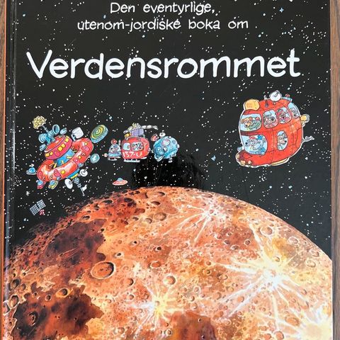 Verdensrommet Bok som inneholder informasjon om planeter, stjerner og universet. Boken er illustrert med bilder av planeter og romfenomener, og gir fakta om solsystemet og verdensrommets elementer.