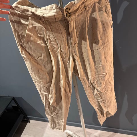 Pent brukt bukse i Rayon M/L i okra-gul. Myk i stoffet og knyting frem. Lommer og fine detaljer.