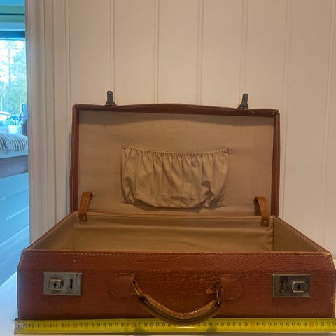 Gammel stresskoffert/dokumentveske i skinn fra Corolla. I god stand, men har noen flekker på innsiden.