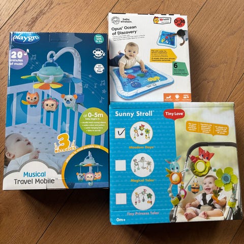 Selger en pakke med babyutstyr, pent brukt av ett barn og i god stand.