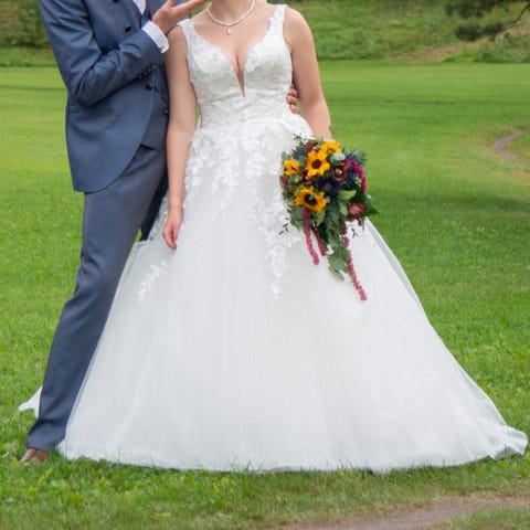 Brudekjole fra Randy Fenoli, modell Clarissa, selges. Kjøpt på Brudehuset i Hamar i 2024. Brukt én dag. Kjolen er i størrelse 34, men vil si den passer en størrelse 36 også da dette er det jeg vanligvis bruker. Fargen er ivory.