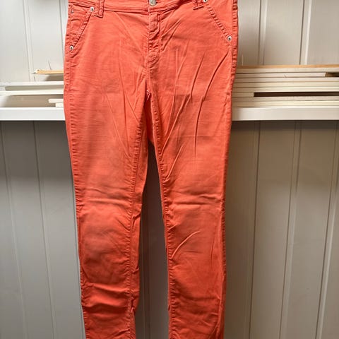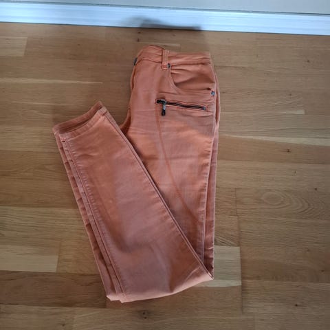 Stretch materiale. Jeans fra Pulz i strl 38. Fargen er en lys fersken/oransje.