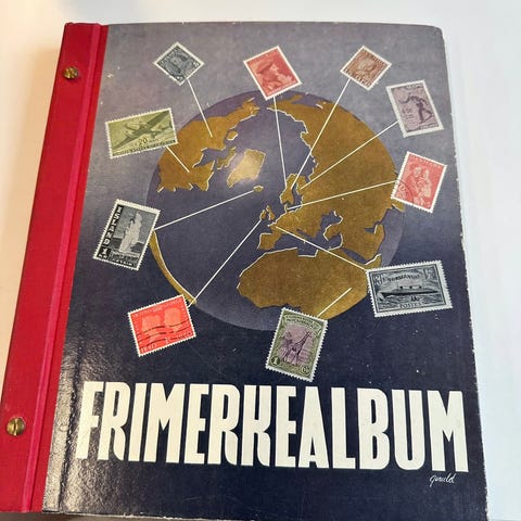 Brunt frimerkealbum med norske frimerker fra 70-tallet