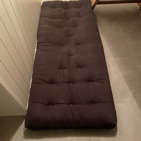 Selger en futonmadrass fra Karup Design i offwhite/lys beige. Madrassen har klassisk tufting med knapper og passer fint til futonseng, gjesteseng eller som ekstra madrass. Normal bruksslitasje, men fortsatt i god stand