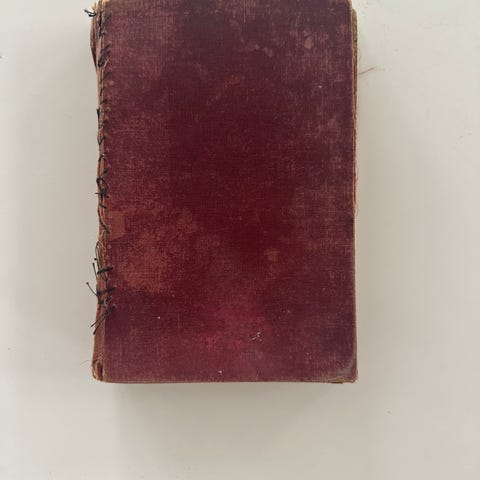 Boken fremstår som pent brukt. Innbindingen er fast og hel, alle blad sitter godt, inkludert de blanke sidene. Ingen ark er skadet, revet eller brettet. Omslaget har noe jevn falming i den røde fargen, noe som er normalt for alder og materialbruk fra perioden. Ryggen er hel, uten løse partier.