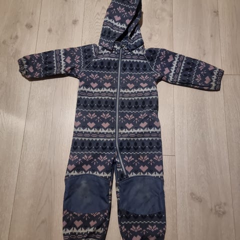 Name it softshelldress i størrelse 92 for jente. Dressen har flerfarget mønster med enhjørning.