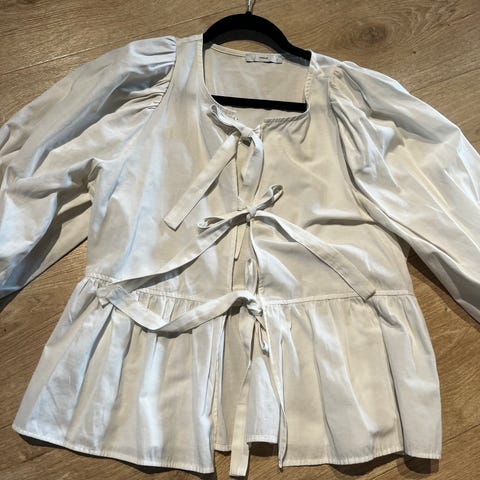 Fin sommer bluse med knyting foran, puffet armer