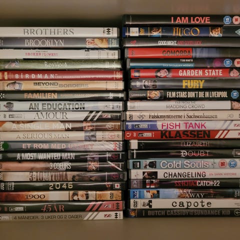 Samling av DVD og Blu-ray filmer fra ulike merker og titler. Ulike sjangere og titler som Walk the Line, S.W.A.T., 8 Mile, The Fountain, Harry Potter, og flere. Filmene er i standard DVD og Blu-ray format.