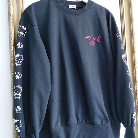 Cropped genser med Sanrio pynt. 65% polyester og 35% bomull. Fra Primark. Litt liten i størrelsen, vil si den passer medium bedre.