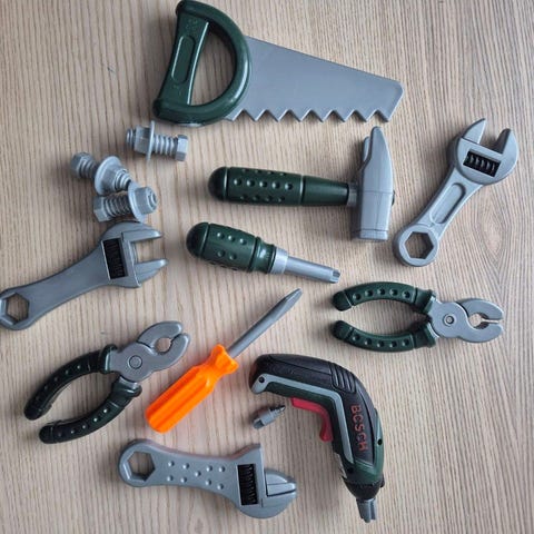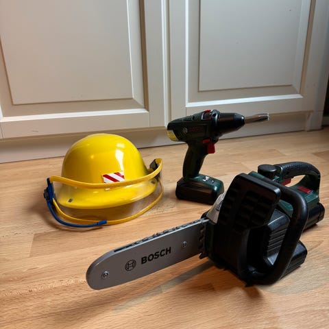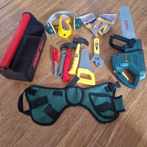 Ulike verktøy selges. Noen har batteri og lager lyd. Usikker på hvilke som fungerer.