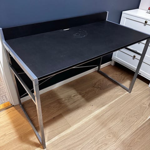 Hjørne skrivebord svart med krom ben