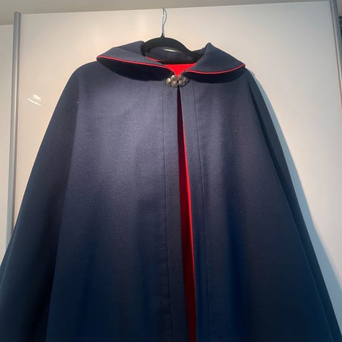 Farge: Rustrød. Jeg har sydd den selv (etter å ha vært på kurs).