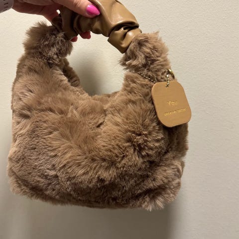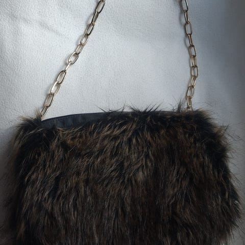 Myk og trendy skulderveske i imitert pels. Aldri brukt.