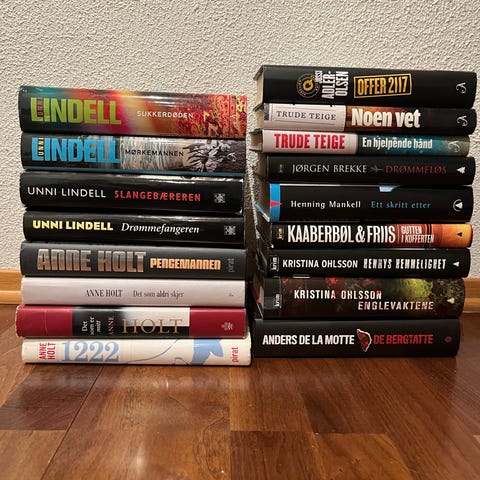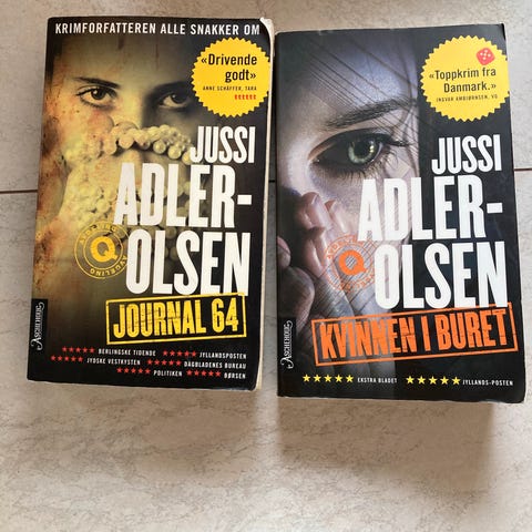 Jussi Adler-Olsen krimbøker: Selfies, Flaksepost Fra P, Alfabethuset, Journal 64, og Kvinnen I Buret. 4/5 er pocket.