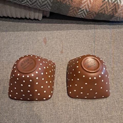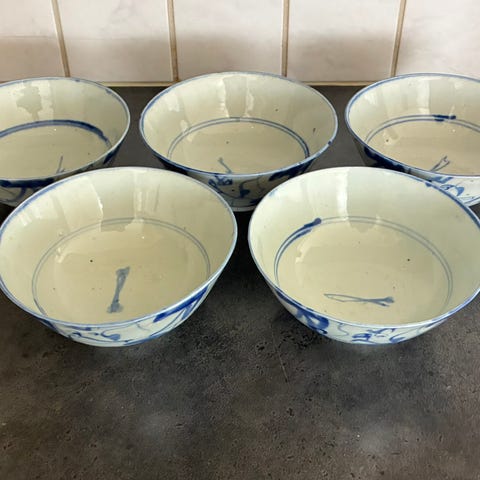 Disse skålene er typiske for midten av 1900-tallet, laget for både hjemmemarked og eksport, og representerer ekte Jingdezhen-håndverk i en periode der mye fortsatt ble gjort manuelt og etter gamle teknikker.