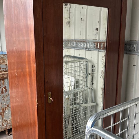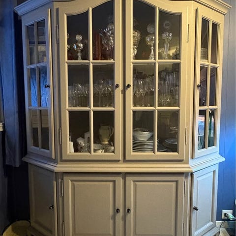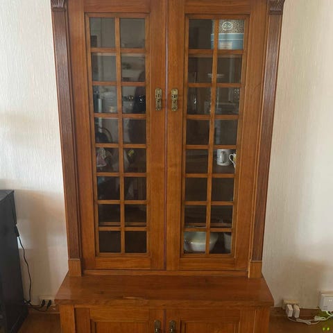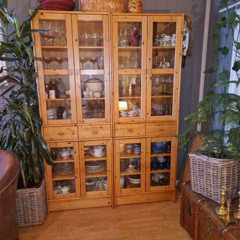 Vitrineskap i beiset furu