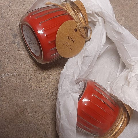 Rosa duftlys, diverse andre gjenstander selges i pakke (kr 50-)