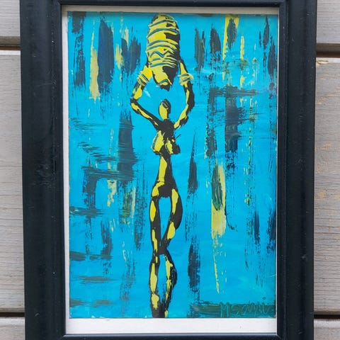 Maleri signert M Sani, mulig afrikansk.
