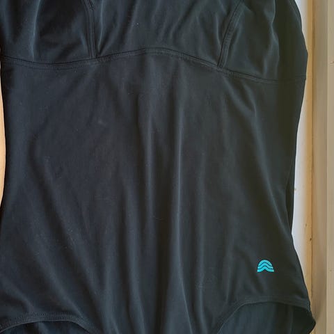 Laget i et ekstremt slitebestandig materiale, velegnet hvis du holder deg mye til i klorvann. Modellen er ganske liten i størrelsen, minner om en S/M. Kun brukt en gang.