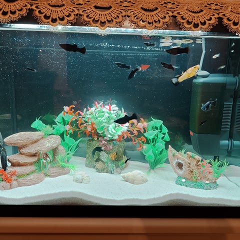 Bilder er tatt med vann i alle akvarium.