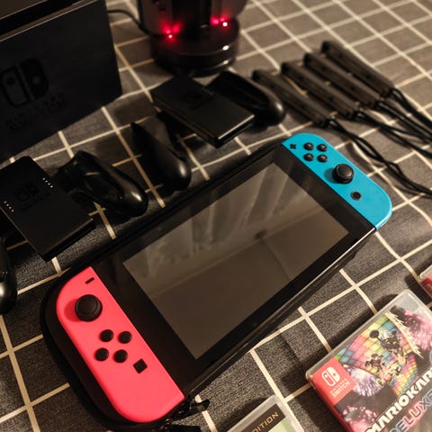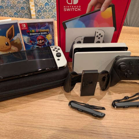 Nintendo Switch spillkonsoll med tilbehør og bæreveske og ekstra joy-cons