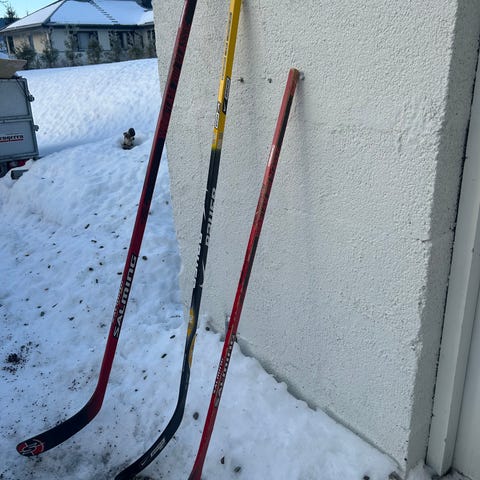 Godt brukte ishockey køller som er fortsatt brukbare selges. To av dem er 140 cm og den tredje er 115 cm. Pris pr stikk er 150 kr, og hvis du kjøper samlet får du dem 350 kr.