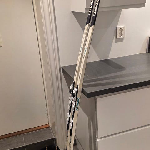 Atomic Redster Classic langrennsski med lengde på 184 cm. Smørefrie ski, der fellen er slitt og må skiftes. Egnet for person på 60-67kg vil jeg tro. Jevnlig vært glidet.