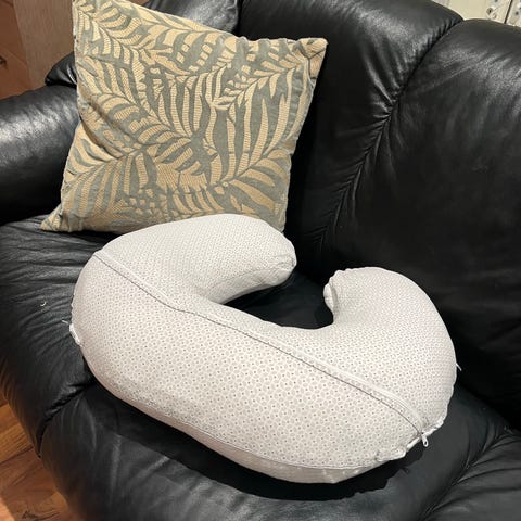 Boppy ammepute med avtagbart trekk(Geo circles gray and white) og original transportpose selges. Størrelse 57 x 46 cm.