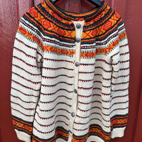 Hjemmestrikket kofte. Brukt. Enkelte nupper.