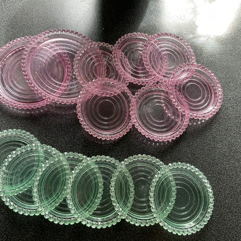 6 håndmalte glassunderlag og 1 håndmalt vase