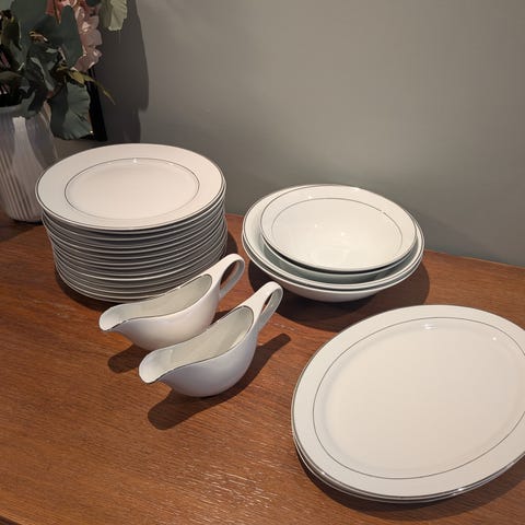 Serviset er i hard porselen (designet av Eystein Sandnes) og selges samlet. Det består av: