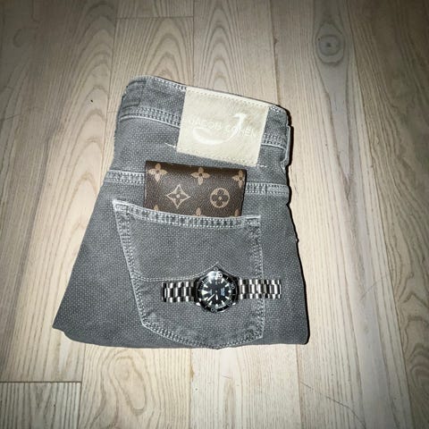 Jacob Cohën Bukser i grå denim, størrelse M for herre. Laget av denimmateriale, designet for komfort og passform. Kom gjerne med bud og spørsmål
