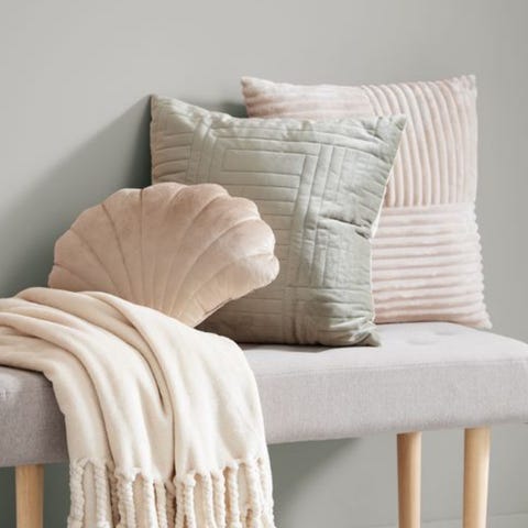 H&M Home pyntepute med frynser i fargen tåkebeige.