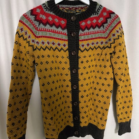 Flott strikka jakke selges da jeg reagerer på garnet den er strikka i.