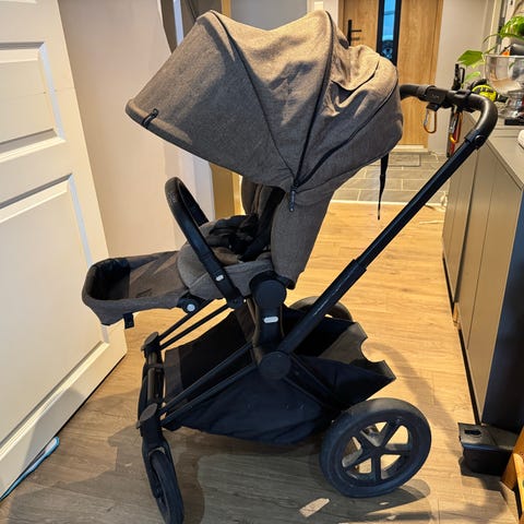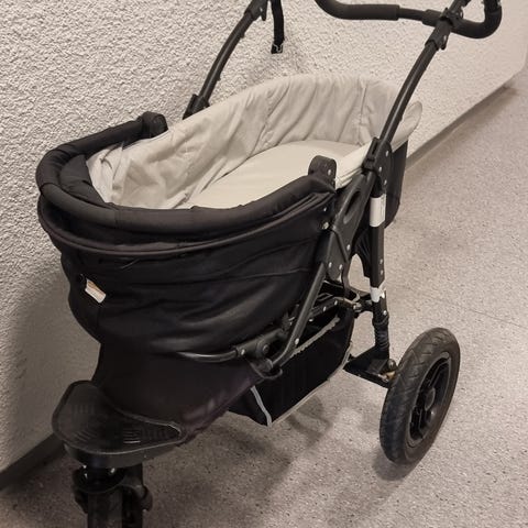 Baby Jogger City Mini GT barnevogn i grå farge. Barnevognen har tre hjul og et sammenleggbart design for enkel transport og oppbevaring. Passer for barn og har justerbar kalesje for beskyttelse mot vær og vind.