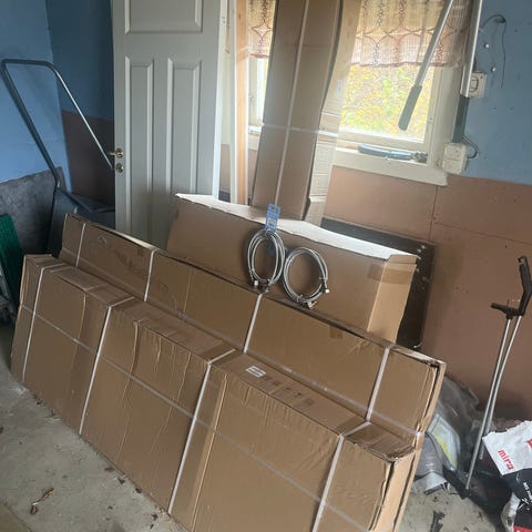 Dusjkabinettet er demontert og klar til levering søndag 25.januar.
