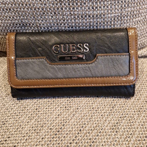 GUESS Dame lommebok laget i kunstlær. Lommeboken har flere rom for kort og en sentral glidelåslomme for mynter eller andre små gjenstander. Designet for damebruk.