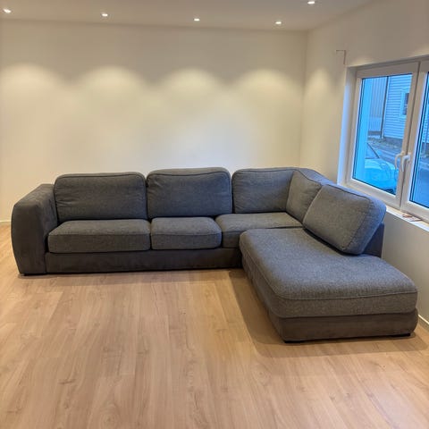 Pent brukt hjørnesofa med sjeselong, kjøpt ny hos Bohus i 2025. Sofaen er under 1 år gammel og fremstår som svært pen, med minimal bruk og uten synlige skader eller flekker.