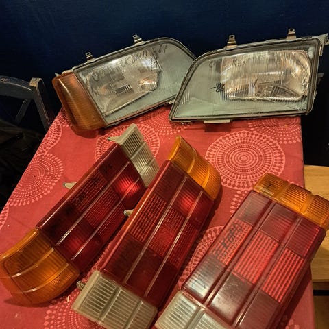 3 par baklykter med div småskader. Ene paret er vel noenlunde greie.