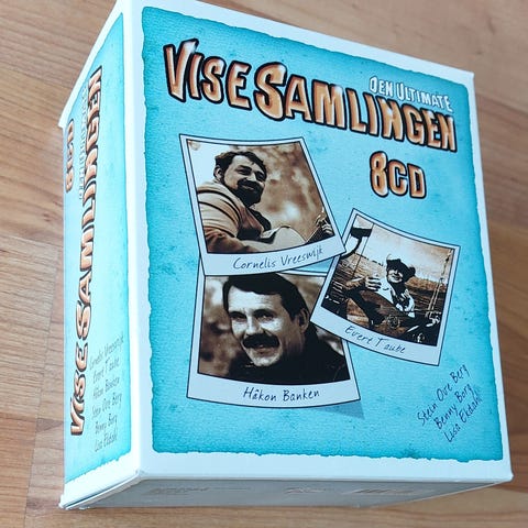Visesamlingen 8 CD musikk samlepakke med innspillinger av artister som Cornelis Vreeswijk, Evert Taube, Hilmer Bøe, Stein Ove Berg, Benny Borg og Liss Ekblad. Pakken inneholder totalt 8 CD-er med et bredt utvalg av viser og sanger.