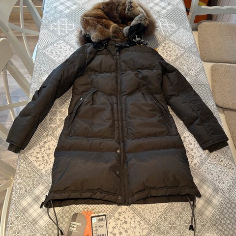 Parajumpers Longbear sort i str S, kun brukt ett par ganger fremstår som ny. Den har avtagbar hette med pelskant. Klassisk jakke som varer i mange sesonger. Følger med egen kleshenger. Selges da jeg skulle hatt den i en større størrelse da denne dessverre blir for liten til meg over skuldrene. Nypris var 10 000,-