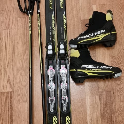 Ski sett fischer 110 cm smørefrie sko 31 staver 85 cm