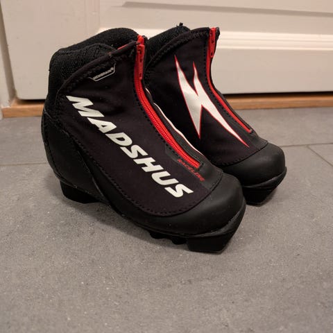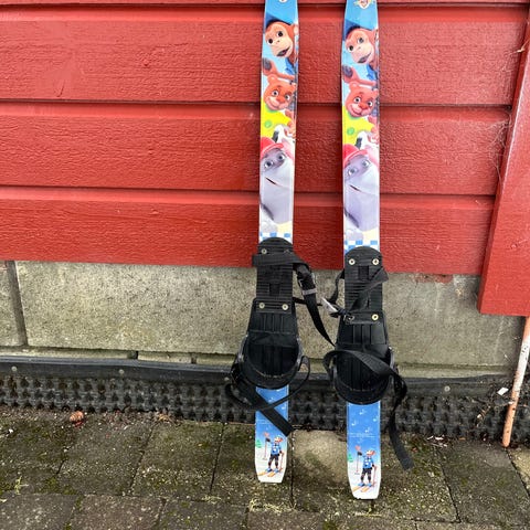 Ski 90 cm smørefrie sko str 25 og staver 80 cm.