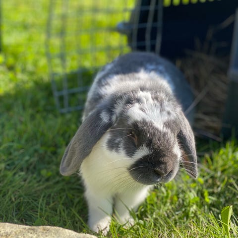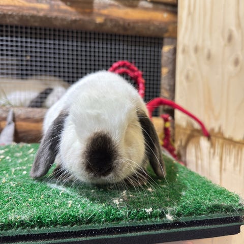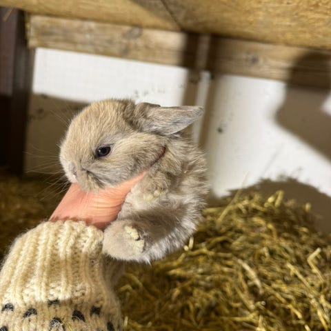 Vi selger vår nysgjerrige og snille guttekanin. Født 20.Mai 2025. Han er en sosial og trygg type, som gjerne koser om man setter seg ned med han. Tillit er noe han får relativt fort, men liker ikke å bli båret. Han elsker å løpe og hoppe. Her har han hatt hyller,stubber,steiner tilgjengelig. Han er vant til å ha høy og vann tilgjengelig hele tiden,og fått pellets 1-2 ganger per dag.